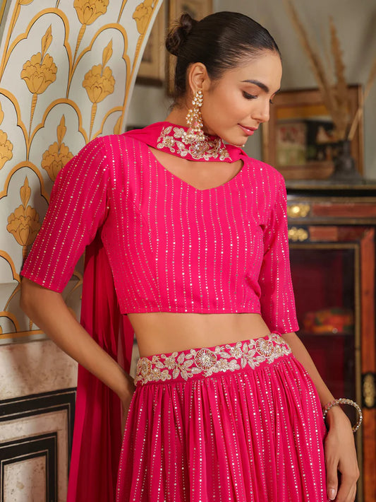Bright Pink Foil Printed Georgette Lehenga Choli Set