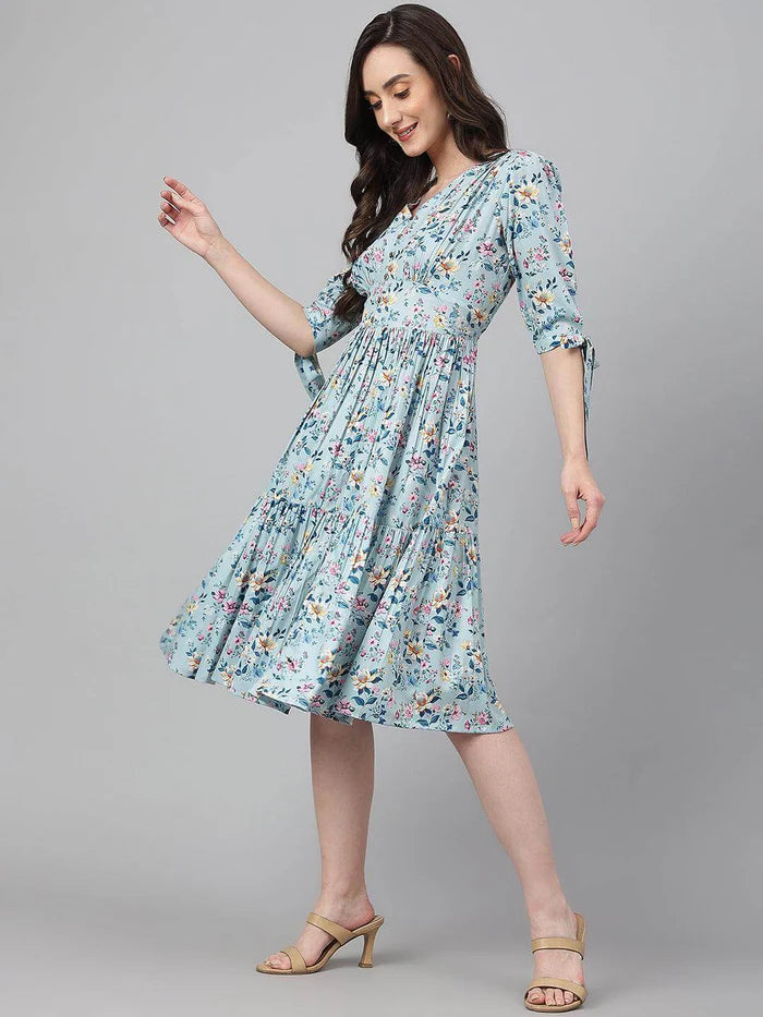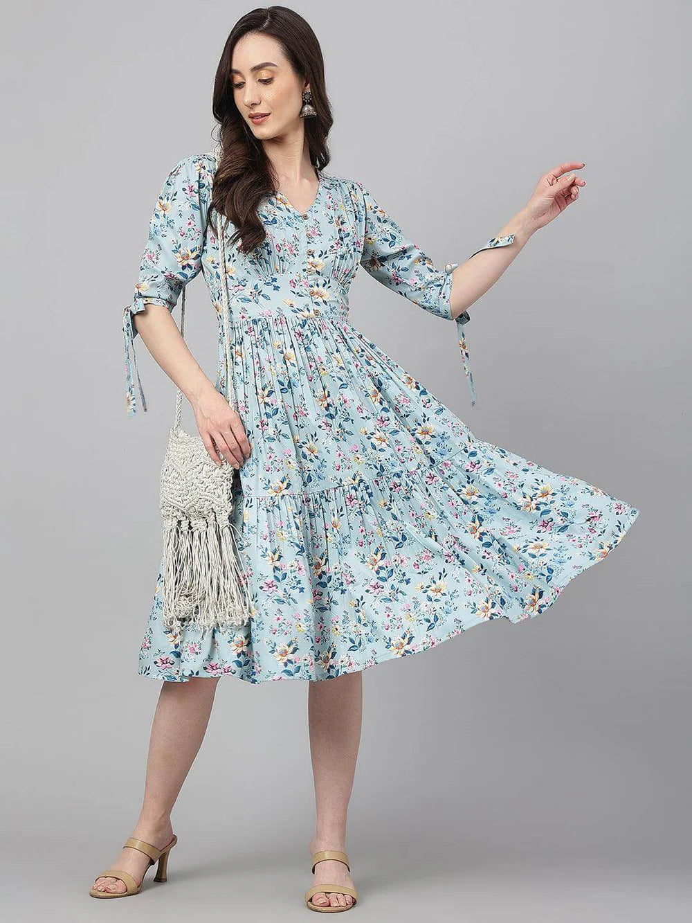 Embrace the perfect fusion of east and west with our Indigo Ink Flared Indo-Western Dress. This stunning piece blends traditional Indian motifs with a contemporary flare. Crafted from flowy crepe, the dress features a captivating digital print that adds a touch of modern elegance. Its flared silhouette complements the Indo-Western aesthetic, making it a versatile choice for both casual and festive occasions.