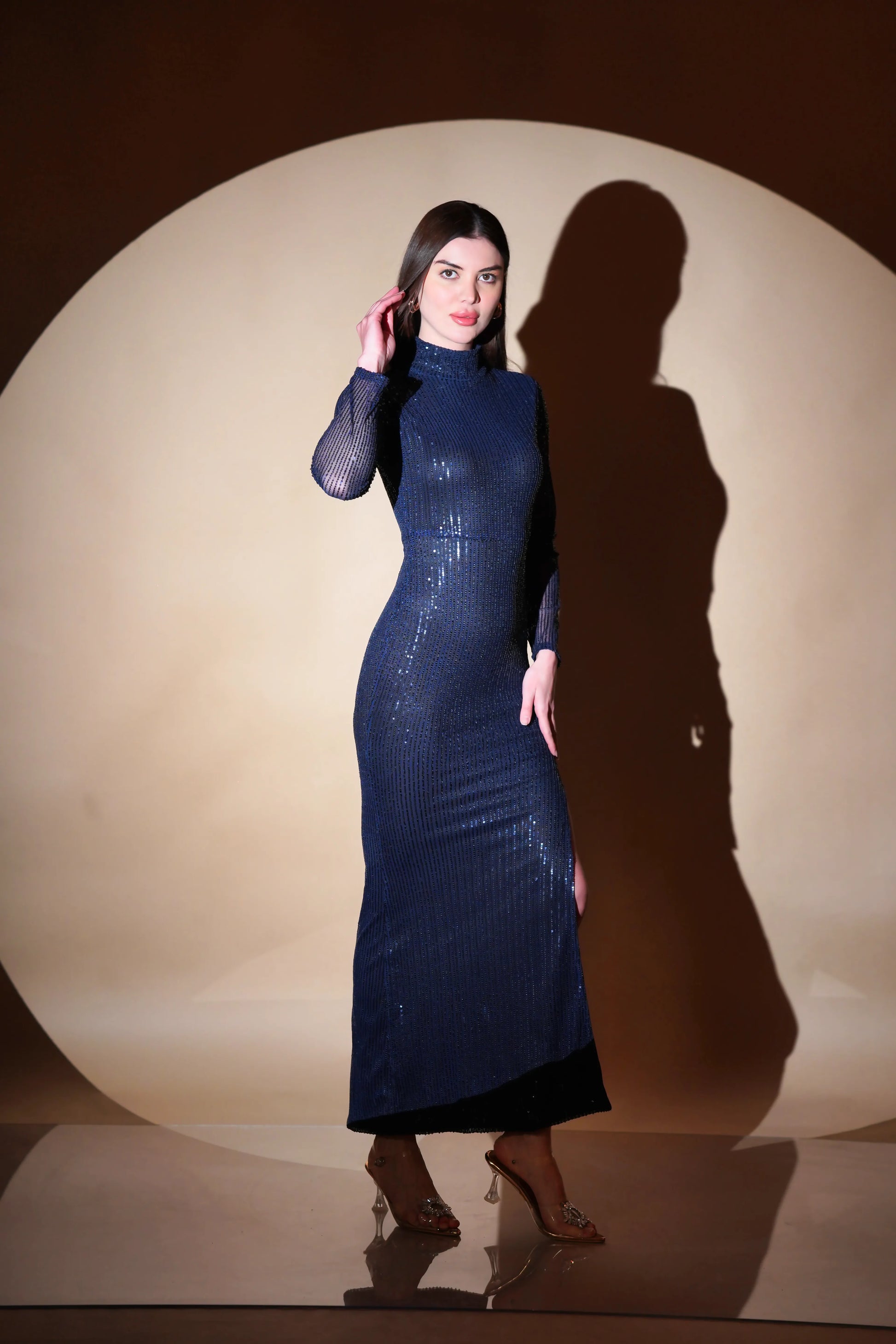 The rich, deep blue hue of indigo is elevated by the shimmering sequins, creating a captivating interplay of light and color. Whether you opt for a mermaid silhouette for a dramatic flair or a classic A-line for timeless elegance, this dress is sure to turn heads at any special occasion. Pair it with minimal accessories and strappy heels to let the dress shine as the focal point of your ensemble.