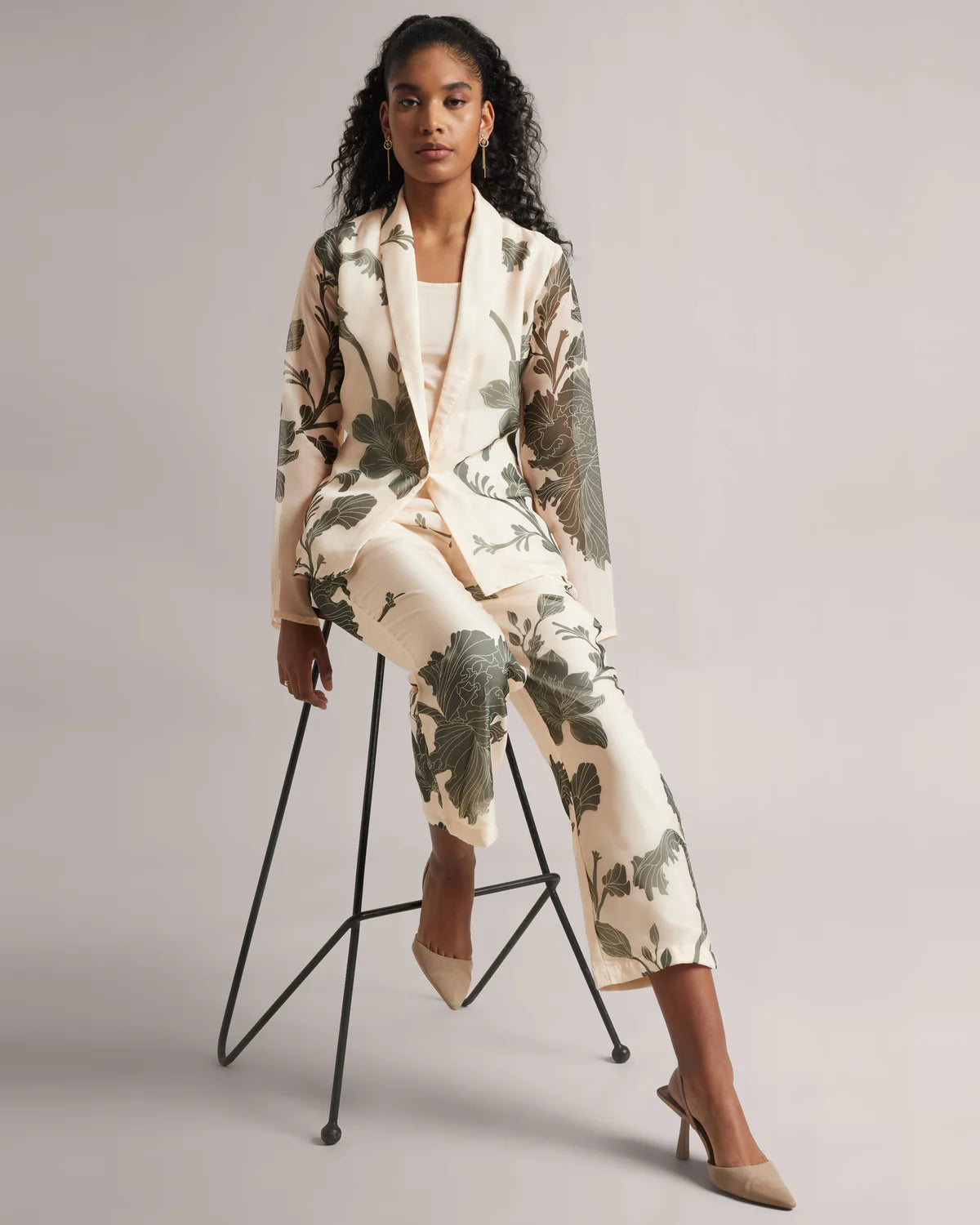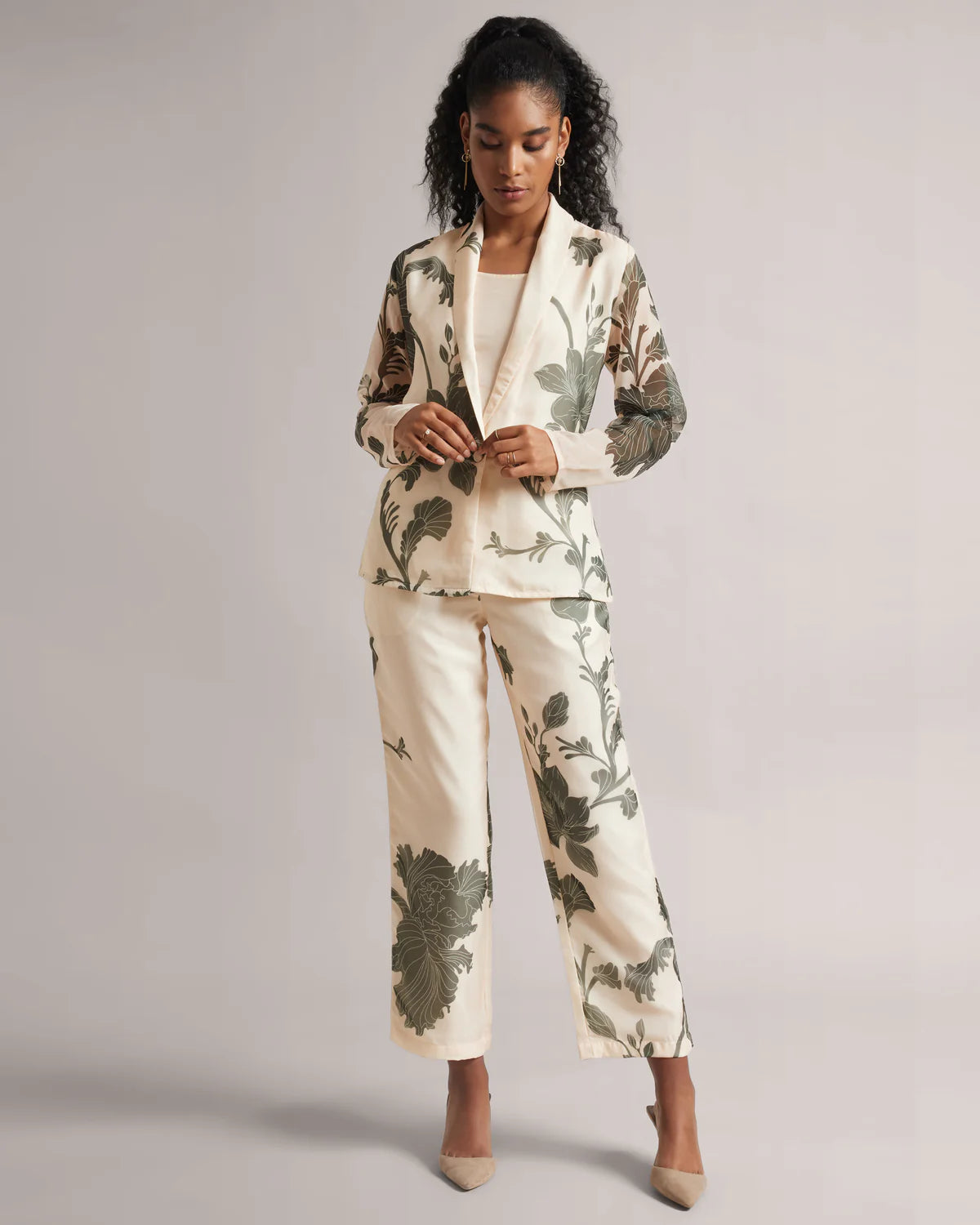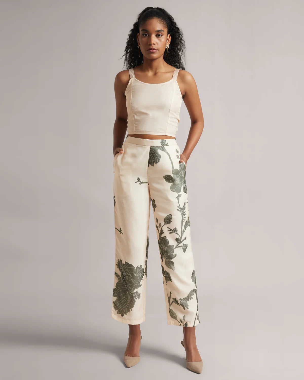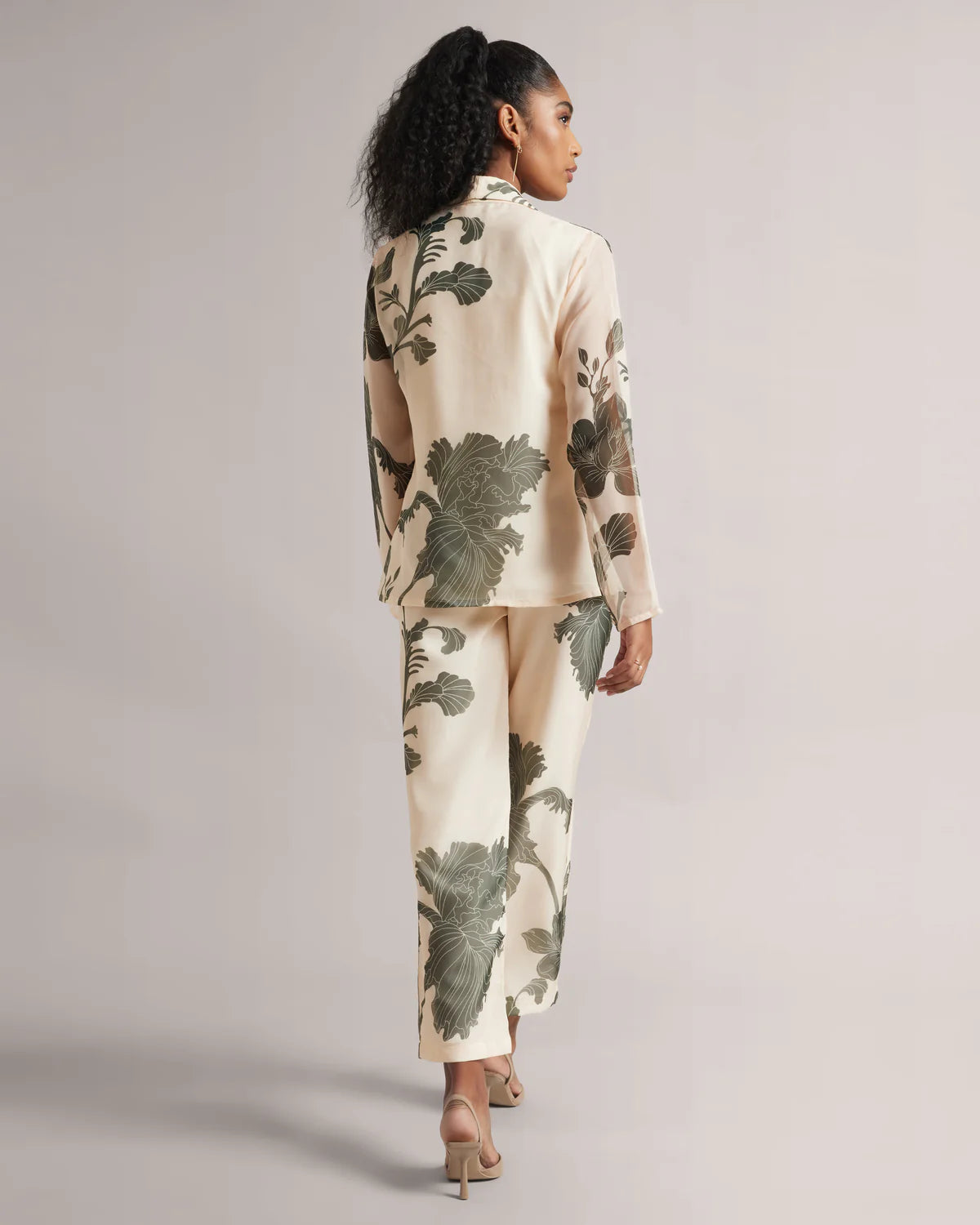 Indulge in effortless chic with our Cream Floral Print Co-ord Set. Crafted from luxurious manmade fabric, this ensemble offers a perfect blend of comfort and style. The delicate floral pattern adds a touch of femininity, while the creamy hue exudes timeless elegance. Perfect for brunch dates or casual outings, this co-ord set is a must-have for your wardrobe.