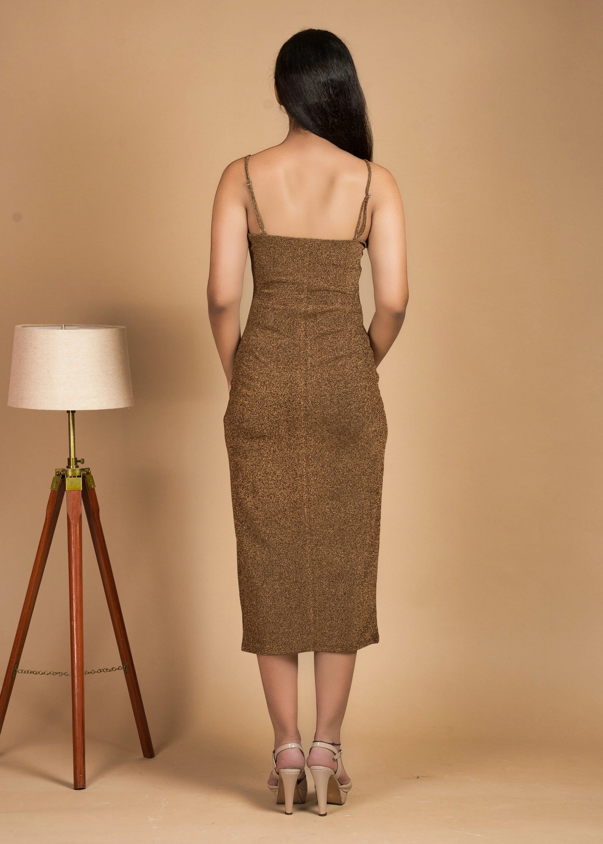 The Hazel Dress is a captivating masterpiece designed to turn heads. Its shimmering gold fabric exudes luxury, while the bodycon silhouette accentuates your curves with sophistication. Perfect for a night of glamour, this dress effortlessly blends contemporary style with timeless elegance.